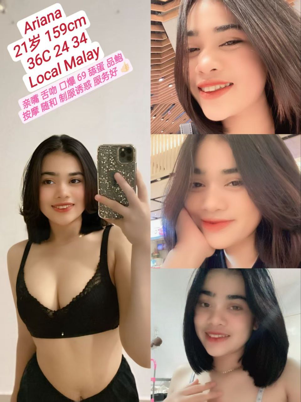 Penang VIP Escort Malay Ariana Posted on June 3, 2025 by benny ⏩Ariana⏩21岁⏩malay ⏩36c 24 34 ⏩159cm⏩48kg 服务内容 鸳鸯浴口交性爱 按摩舔蛋69 口爆舌吻亲嘴 外卖过夜 堂食费用 310 1s 45min 620 2s 90min 服务态度好 新车到